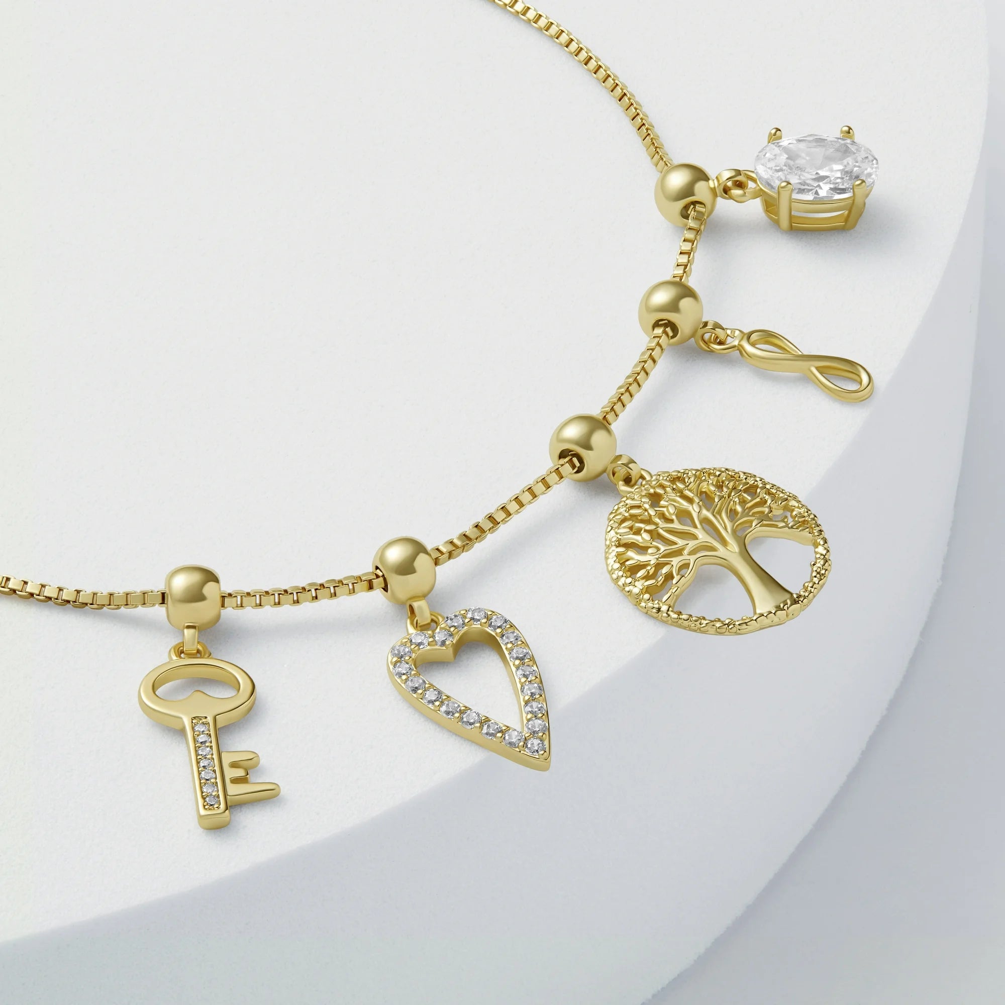 • Charm Bracelet style. Charms slide on bracelet but remain in place on the desired position on the bracelet.