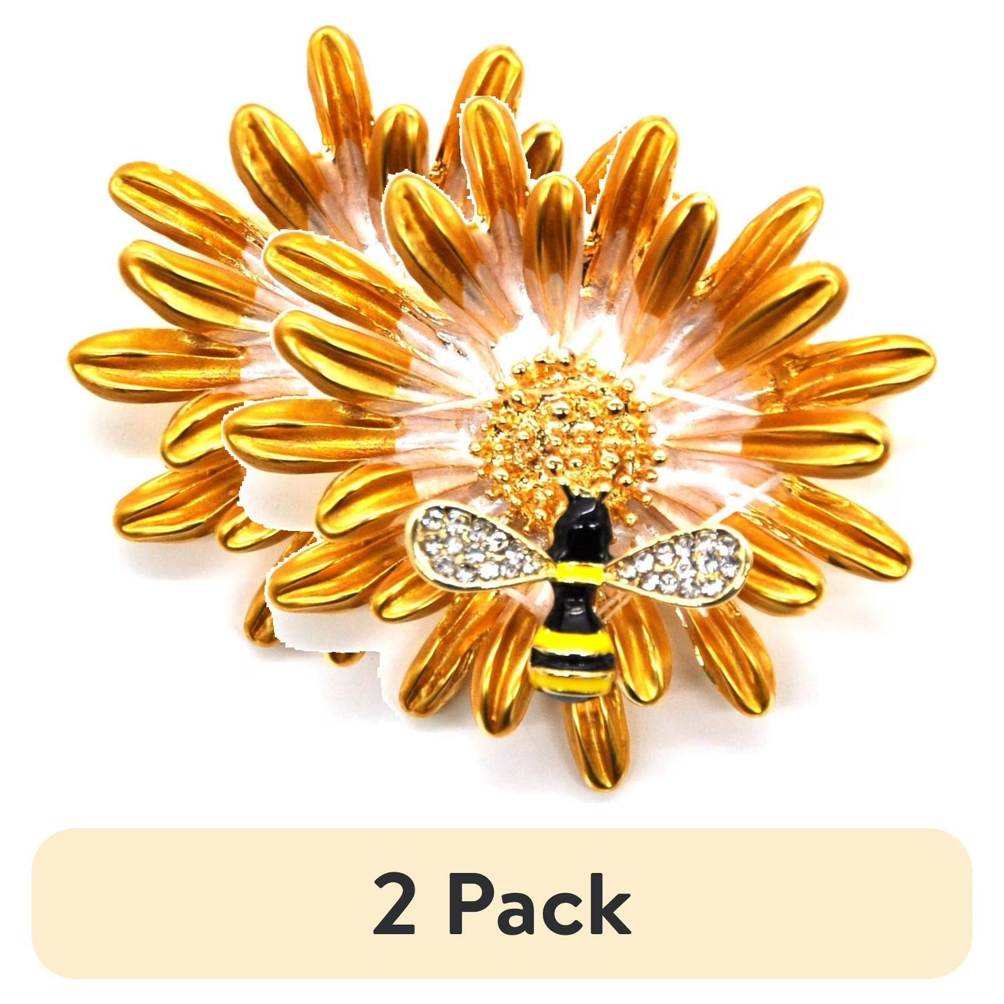 (2 pack) Belagio Rhinestone Metal Locking Daisy and Bee Brooch, Gold, Pink- Sewing Fasteners