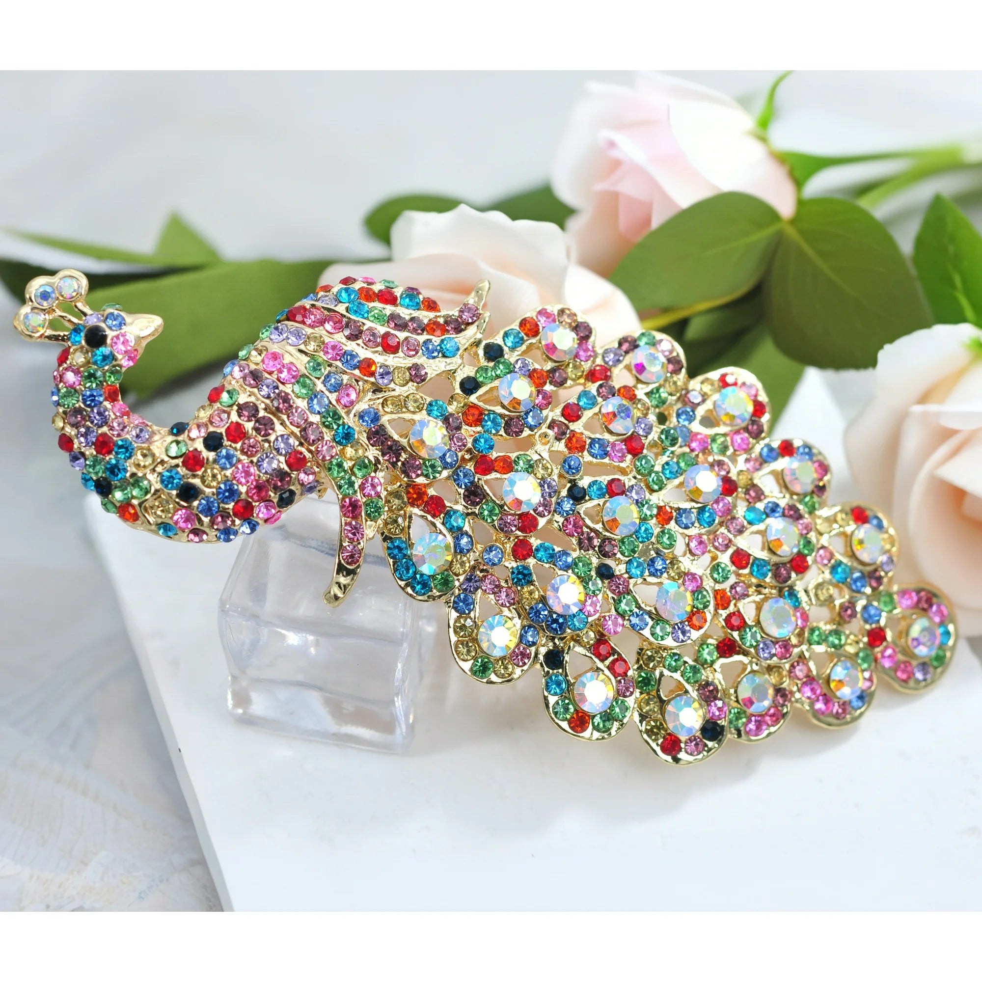 Gyn Joy Peacock Multicolor, Austrian Crystal Rhinestone Art Gorgeous Pins and Brooches, Gold-Tone, 5 Inch