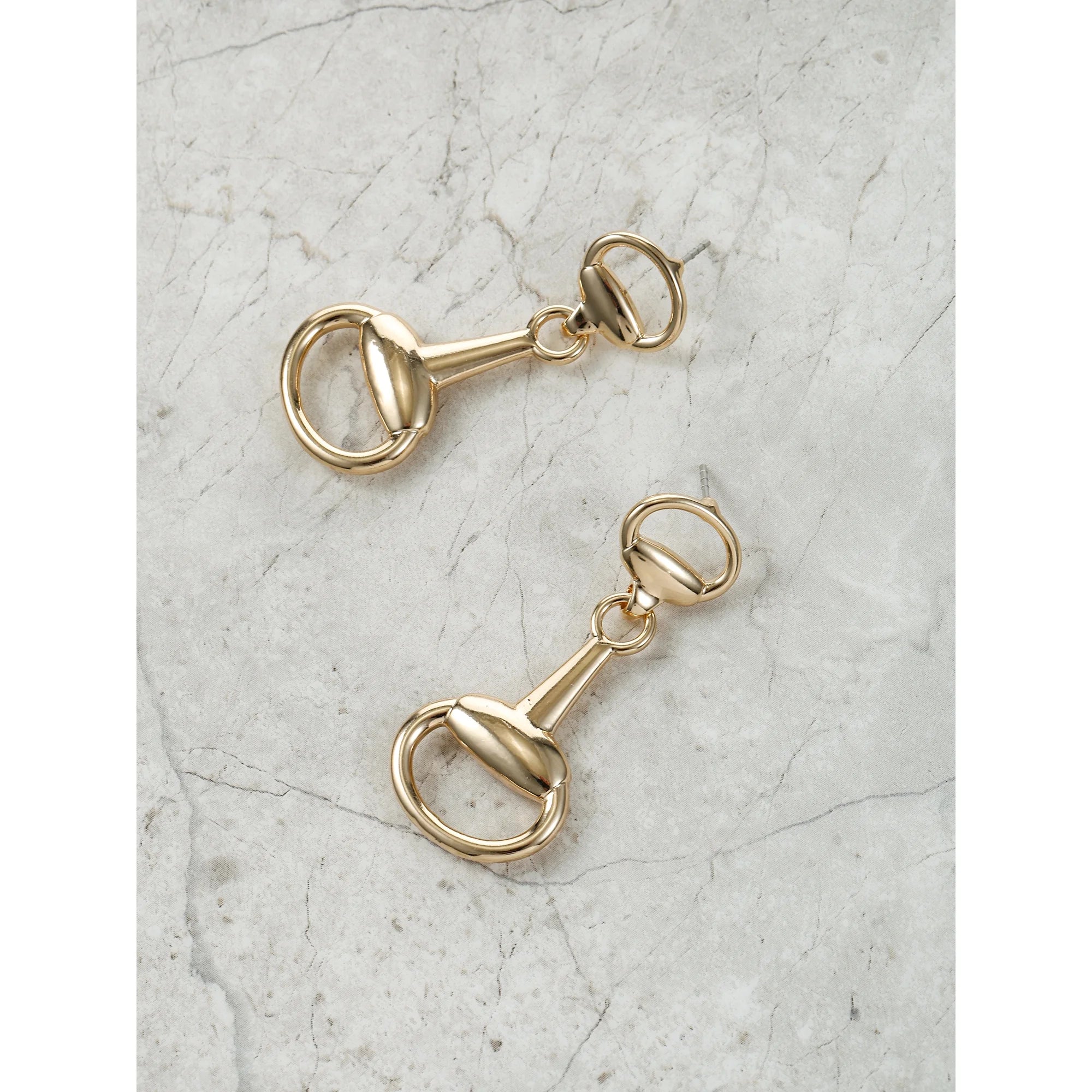 These equestrian inspired earrings from Time and Tru feature a classic, goldtone horse bit shape. The versatile styling makes this earring the perfect choice for adding a contemporary and elegant touch to any outfit.