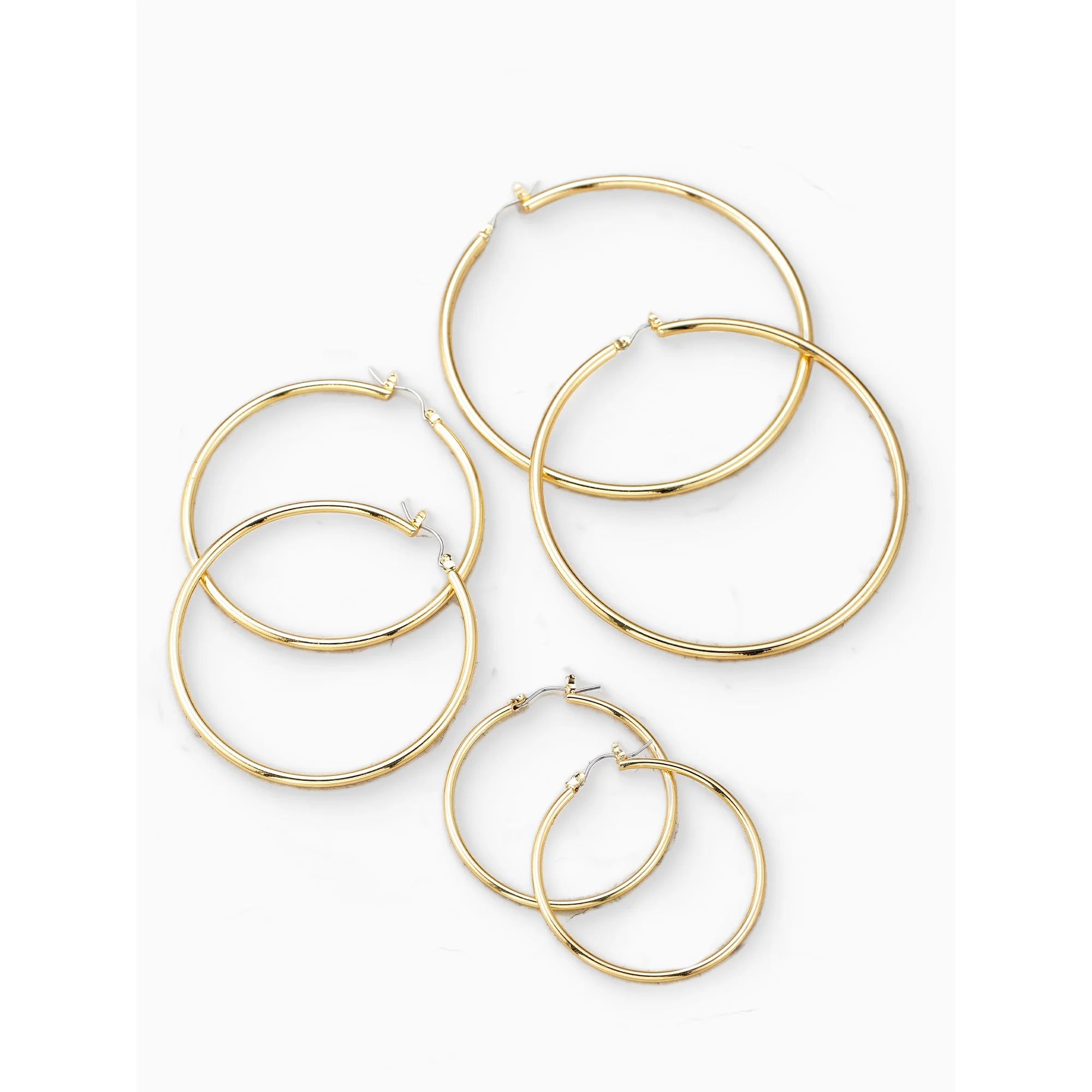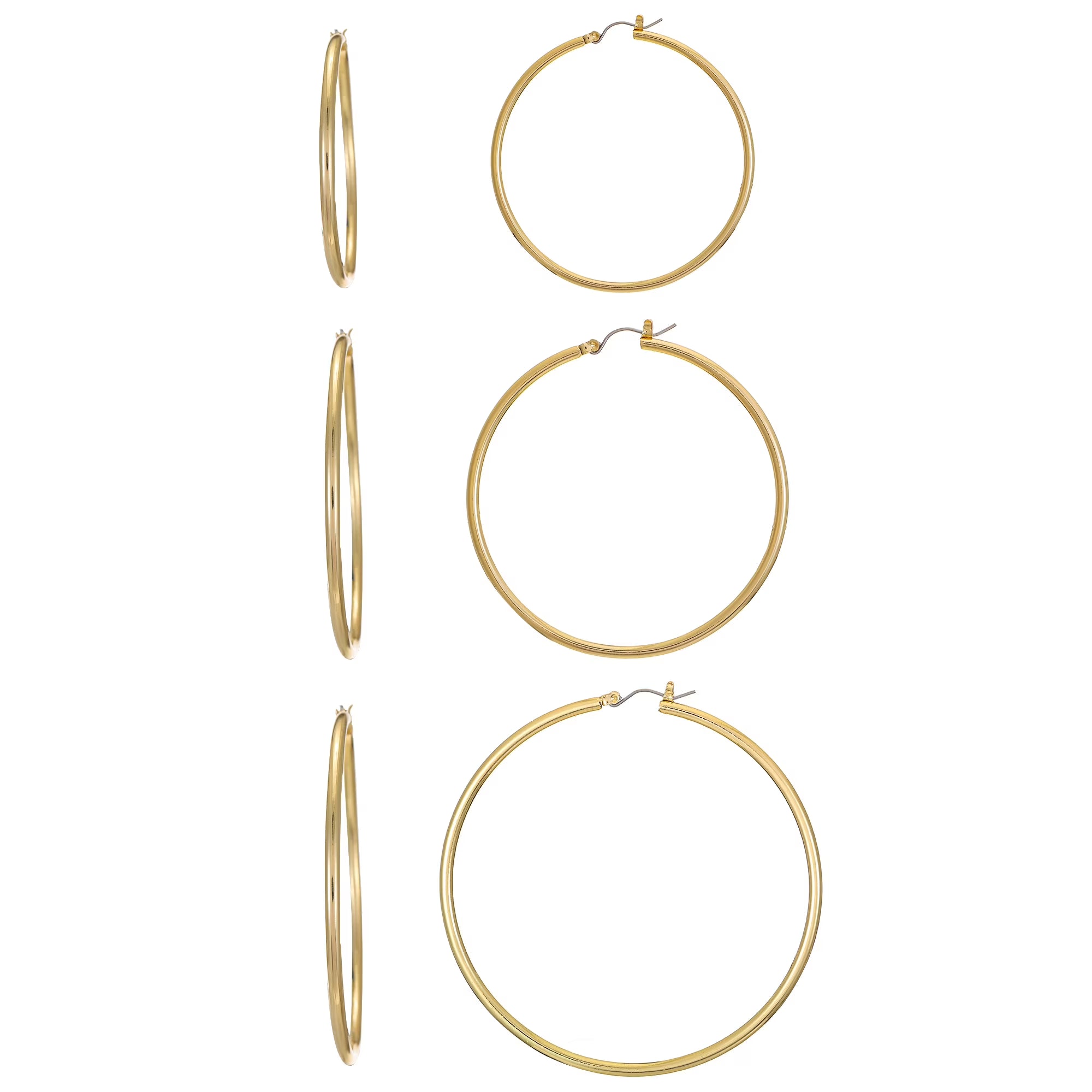 Women's Gold-tone Hoop Earrings, 3 Pairs