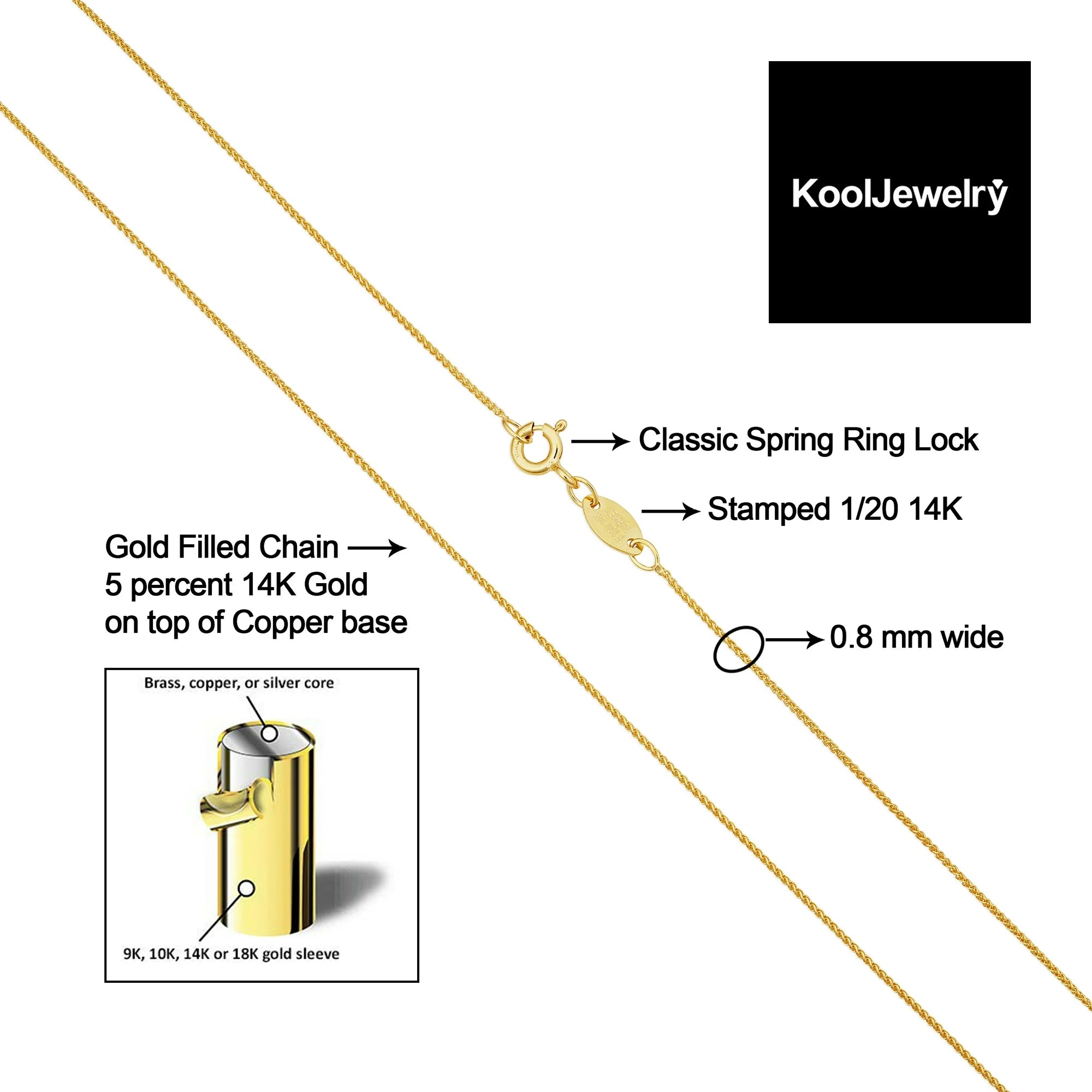 KoolJewelry 14k Yellow Gold Filled Round Wheat Chain Pendant Necklace (0.8 mm, 18 inch)