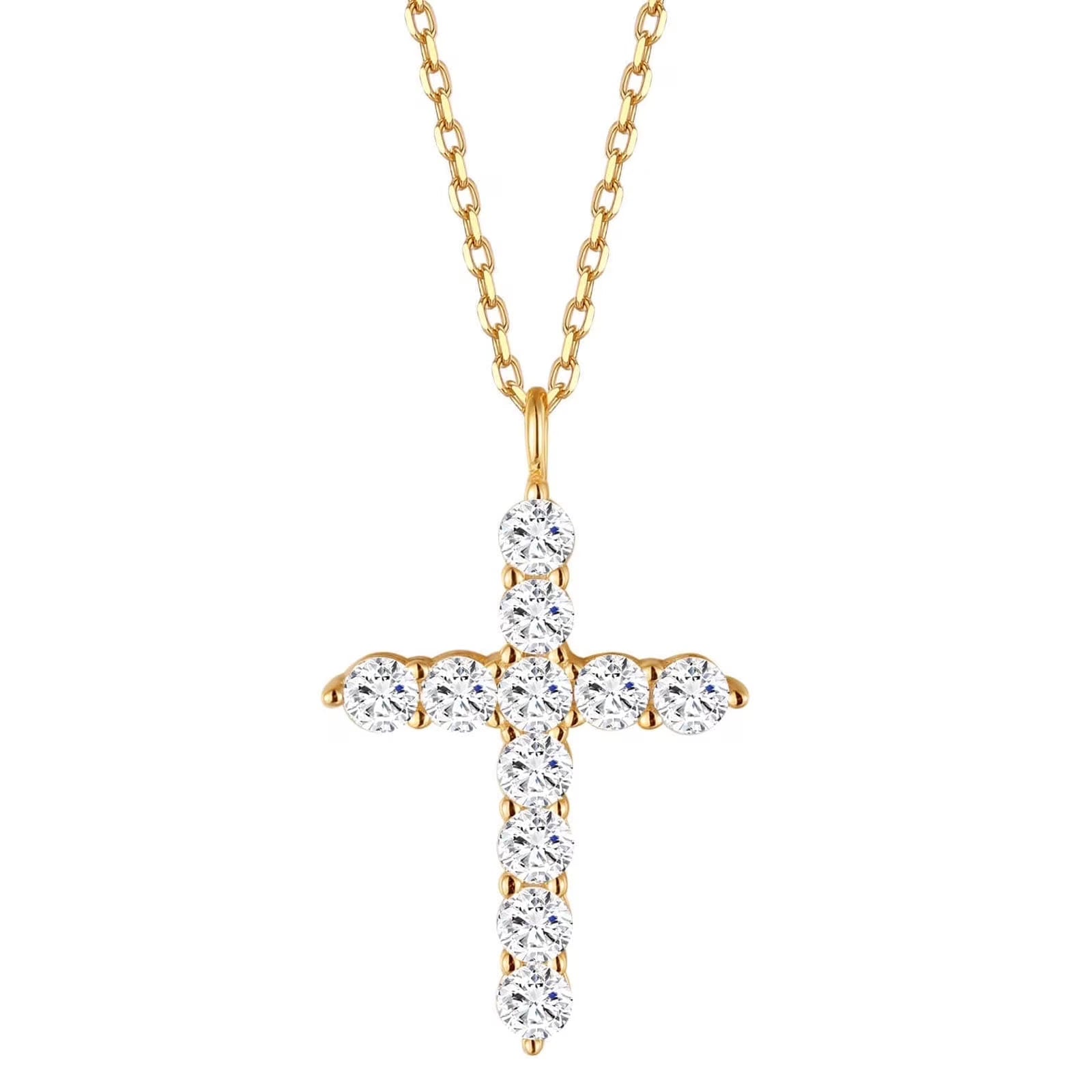 These Women's Cross Faith necklaces are crafted from Hand AAAA-quality cubic zirconia and plated in 14K Gold.